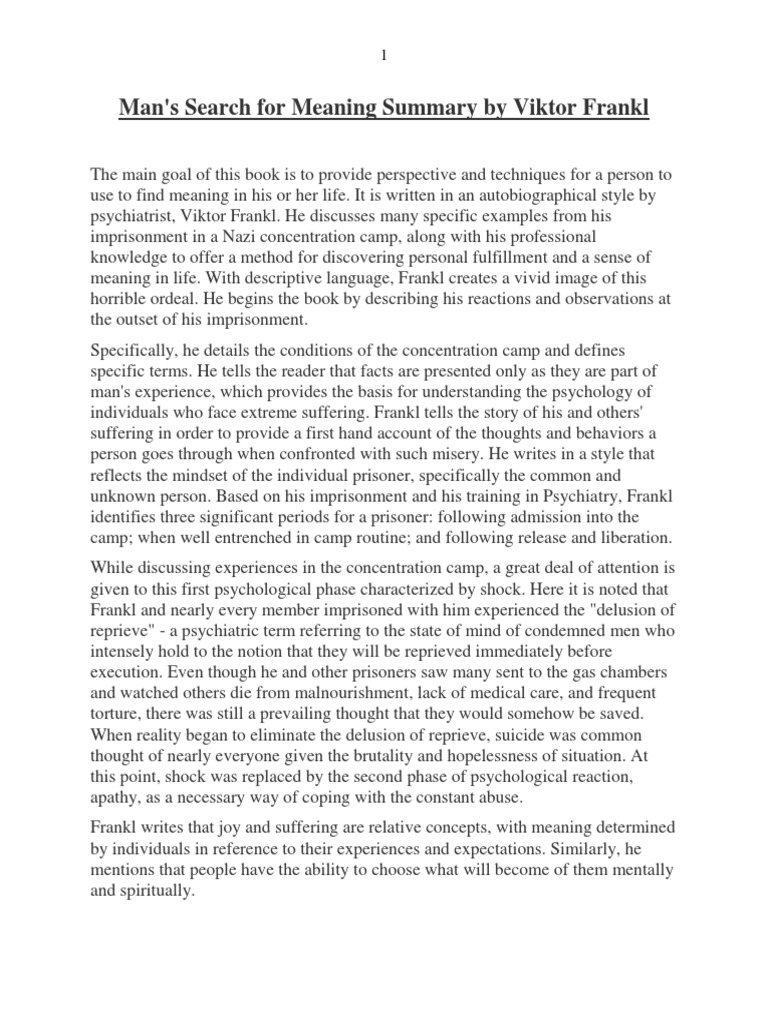Book Summary Man S Search For Meaning Viktor E Frankl Pdf